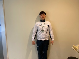 1.足の裏を進行方向にむけ、つま先を上に向け5秒間キープします。