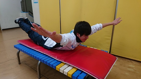 今日は、先日高田コーチが投稿していた【ひこうき体幹トレーニング!】を使って