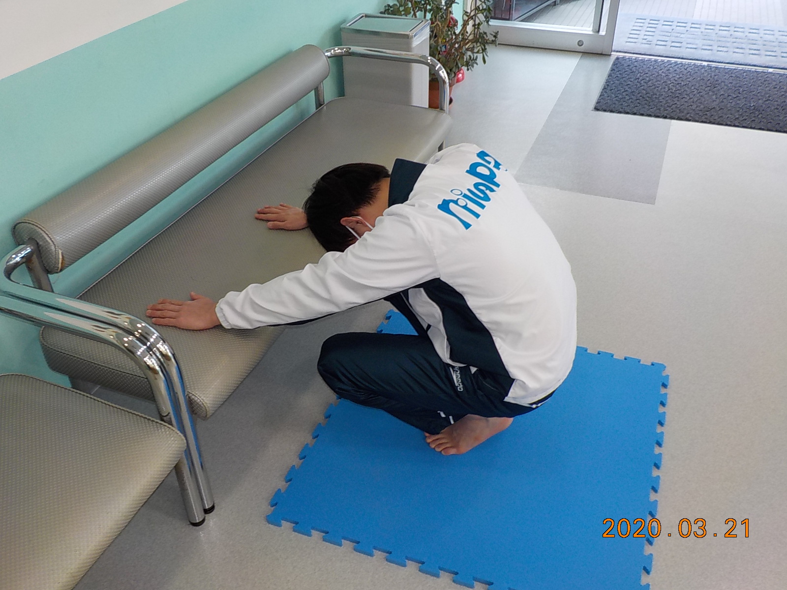 イスなどに手をのせて頭を入れて浮かんだ姿勢をイメージしてください。