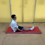 尻尾のような骨を、床に向けるようなイメージで、少し骨盤を丸め込みます。