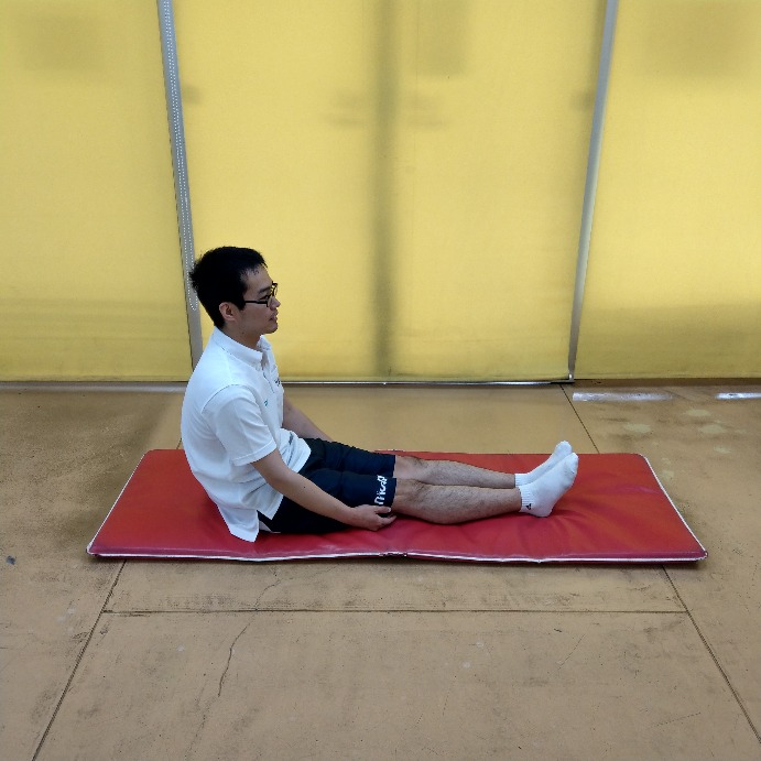 手は太ももの上ですべらせるように、目線はおへそをのぞくようにしてみましょう。