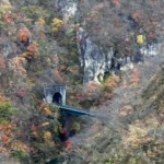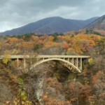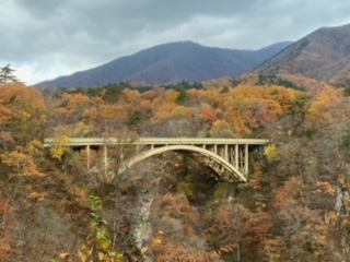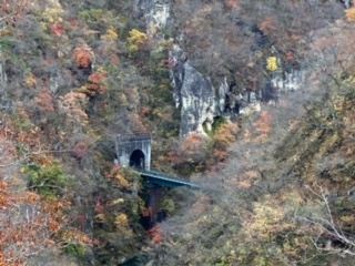 鳴子峡には鉄橋があり、そこを電車が通ります。