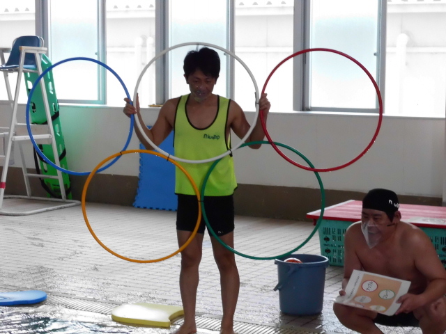 参加者の皆さんは熱く泳法にチャレンジしています。
