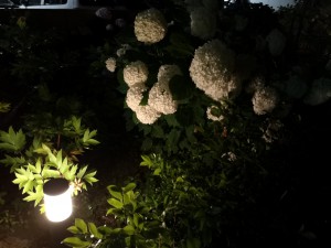 夜の明かりに照らされている紫陽花です。
