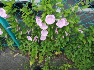 咲いています。フエンスに絡まりつくように咲いています。