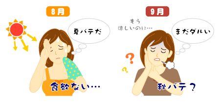 9月は最高気温が次第に下がりますが、秋分の頃までは暑さがぶり返し30℃以上の真夏日が現れる場合があります。 朝晩は涼しくなりますが、日中の気温が上昇すると1日の気温差が大きくなり、体が気温の変化に対応できず、疲労感を感じて、体調を崩しがちになります。 大きな寒暖差により自律神経の働きに乱れが生じ、食欲不振や下痢・便秘、慢性疲労などの体の不調が現れます。