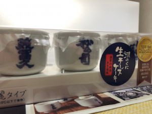 酒蔵の名が入ったおちょこに生チーズケーキが入っていて