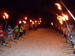 関西からは7班と8班のお友達が滑りました。今年は関東、東海のお友達とも触れ合いながら花火、松明滑走を見学しました。花火も綺麗でしたがやはり松明滑走が1番綺麗でみんな目を輝かせていました