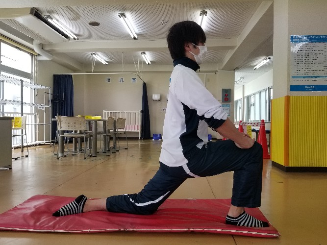 ストレッチです。心拍数を上げて身体を温める時に行うので