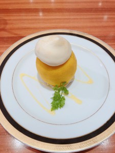 レモンの皮が器になっていて中にはレモンのムースが入っていました!!