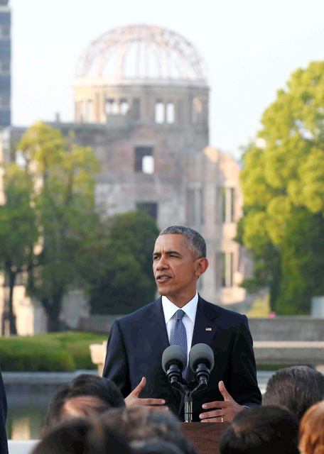 安倍首相とともに広島を訪れ「核兵器のない世界」に向けた演説をしました。