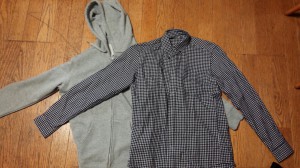 白と黒のチェックのシャツと、グレーのパーカーを買いました(^^)v