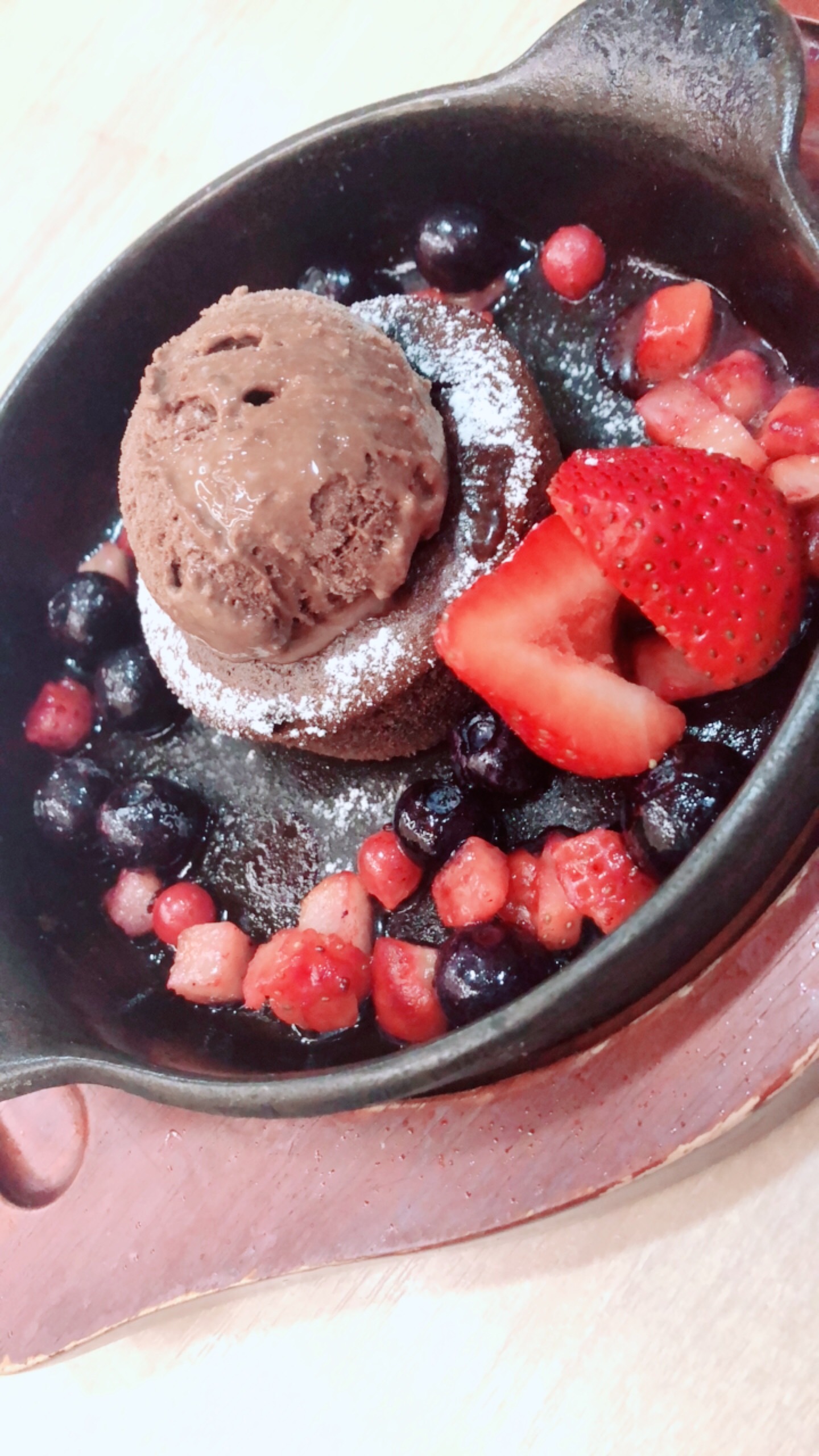 温かいチョコと冷たいベリーがとても合っていました( ‘ ‘ )♡