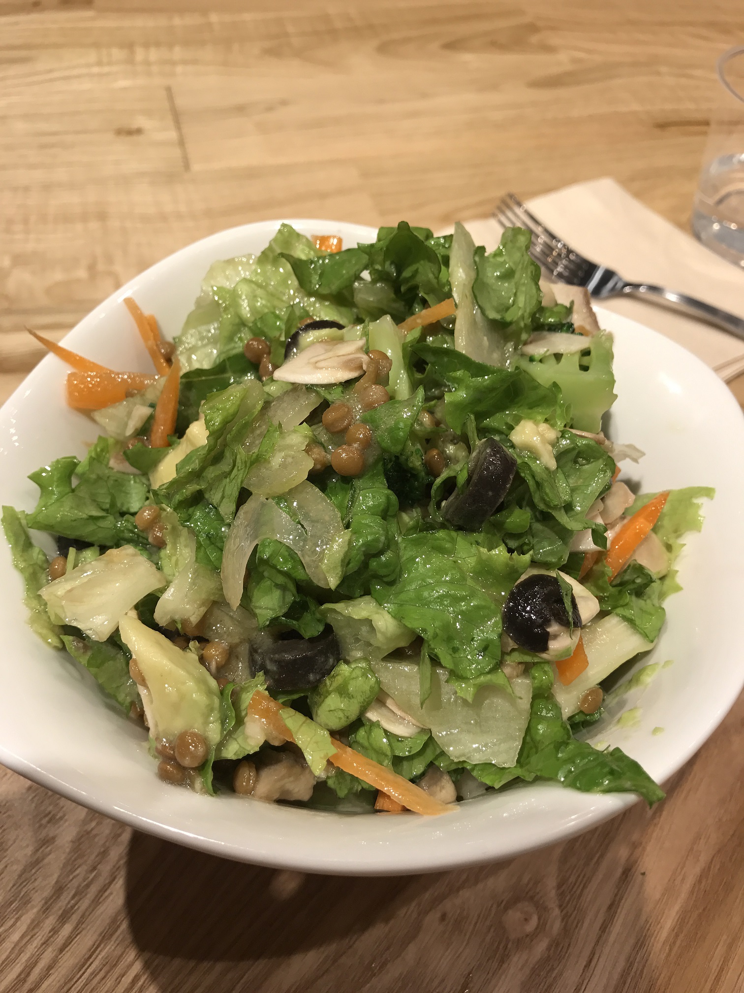 私は、ロメインレタスにセロリ、オリーブ、人参、マッシュルーム、