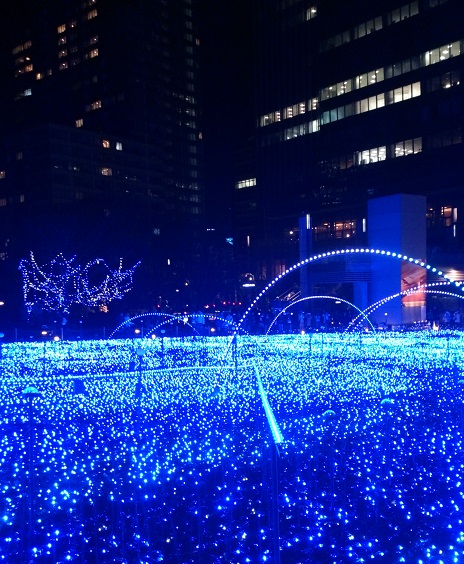 芝生一面に広がる青いライトが波うつように変わっていきます![]()