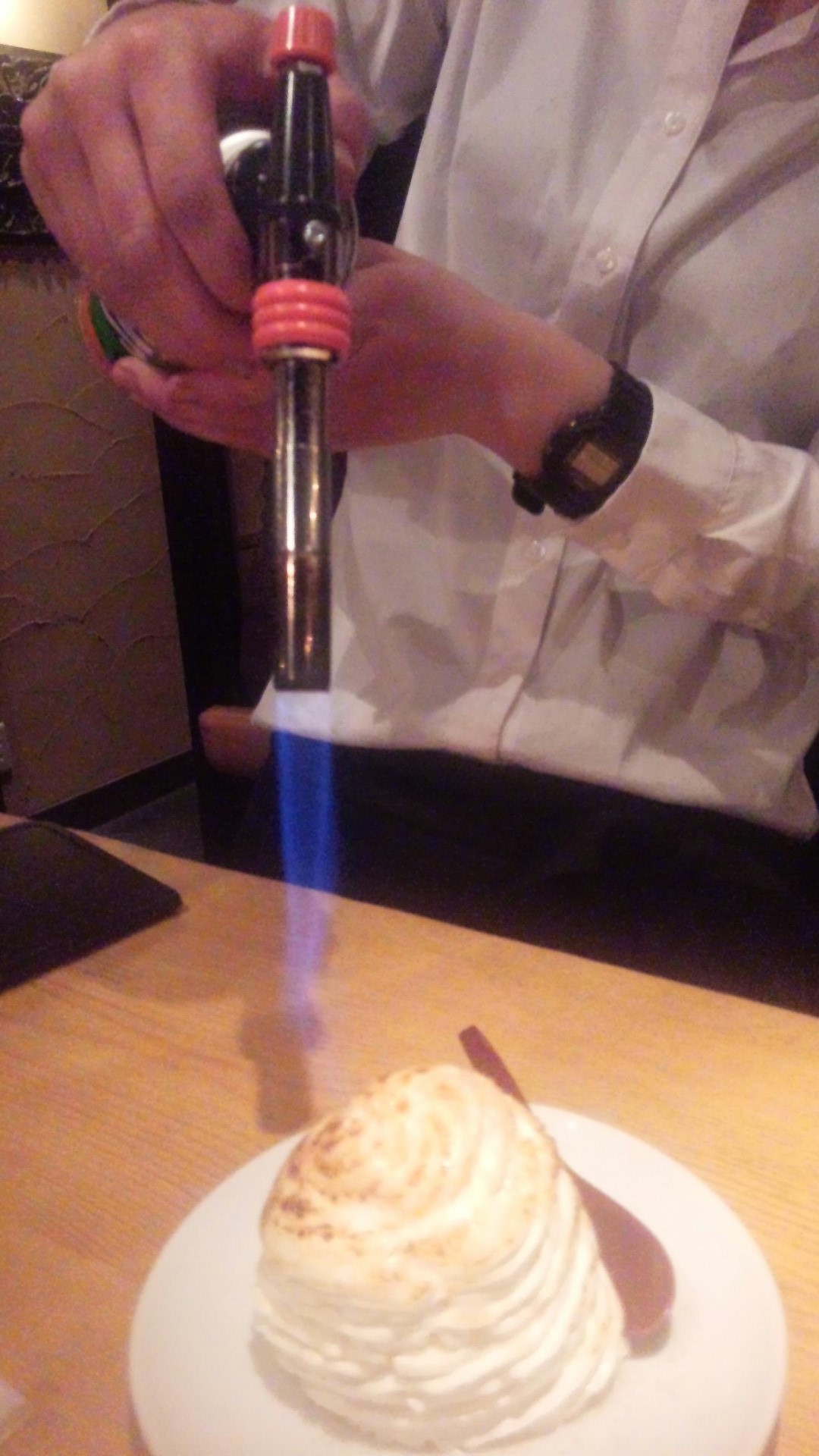 バーナーで焼き目をつけ、シロップをかけて食べる