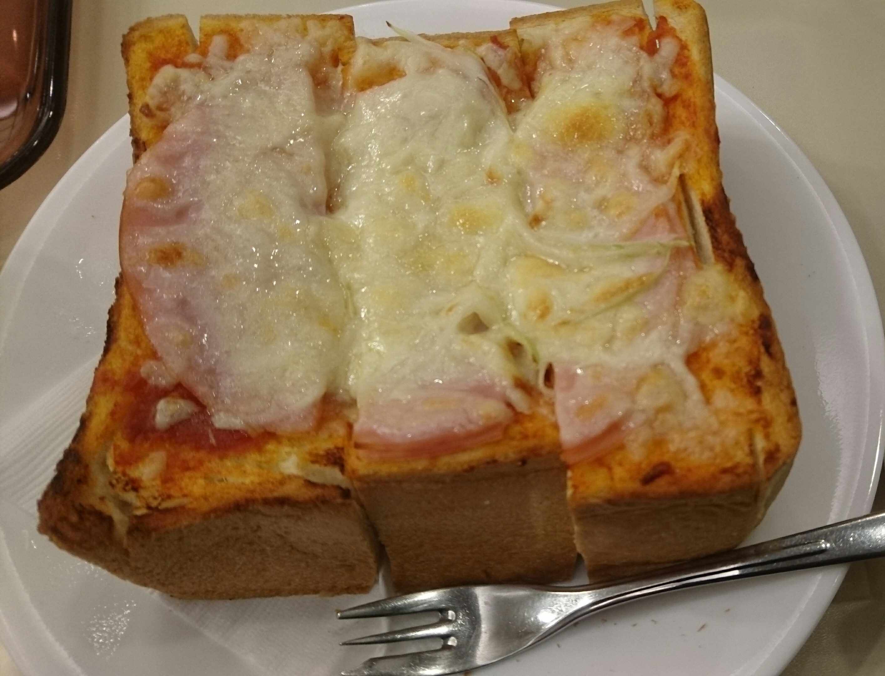 ピザトーストを注文したのですが、こんな分厚いものには馴染みがなかったのでビックリ