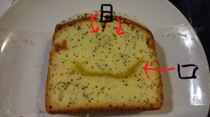 パンの空気の穴が目で、レモン風味のクリームが口・・・