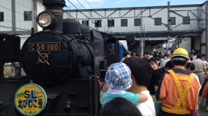 時間ほど停車していて見学、撮影したり記念の石炭を貰ったりと駅の内外でイベントが催されていました。またアッと言う間に時間は過ぎ、SLは米原に戻る事に。方向転換が出来ないので帰りのSLは後ろ向きで電車