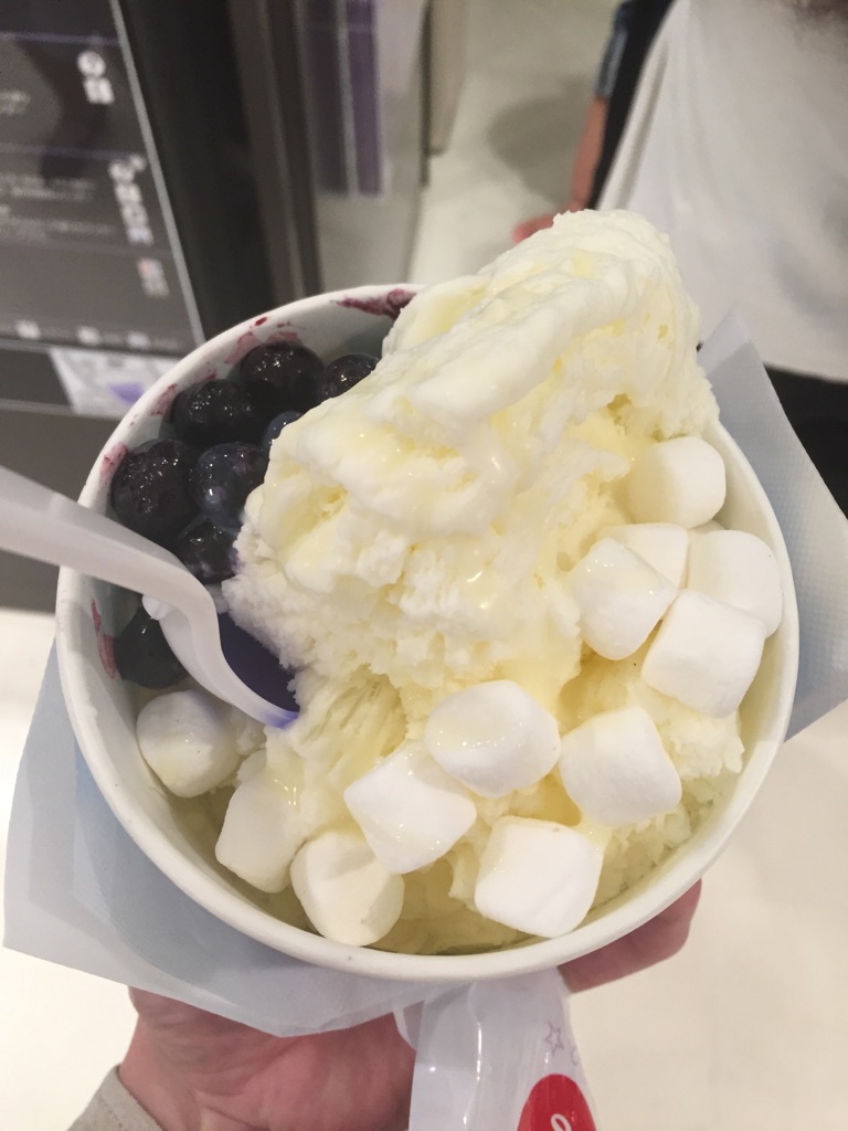 私が食べたのはブルーベリーとマシュマロがトッピングされているモノです![]()