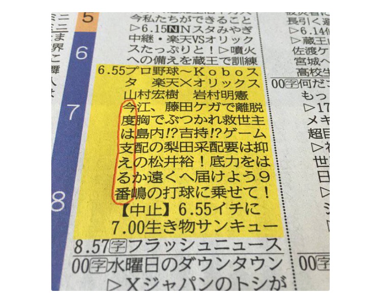 宮城県のテレビ局(東北放送)が4月20日付けの新聞テレビ欄に