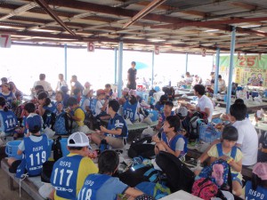 浜に到着したらまずはお昼ご飯。よほどお腹がすいていたのか、お母さん手作り弁当を黙々と食べていました。