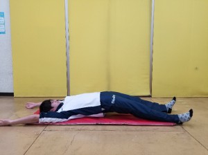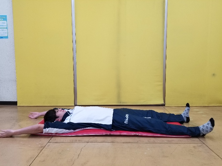 ①仰向けで大の字になり、手の平を内側に向けます。