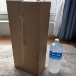 2リットルのペットボトルを横にそびえ立つダンボール。