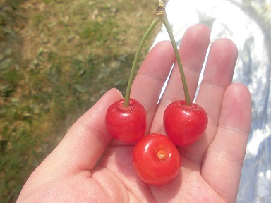とっても真っ赤で、摘んだばかりのさくらんぼはとても美味しかったです![]()