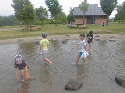 気温が30度だったというのもあり、水遊びをする子も・・・![]()