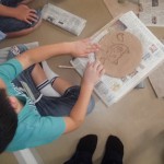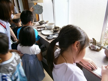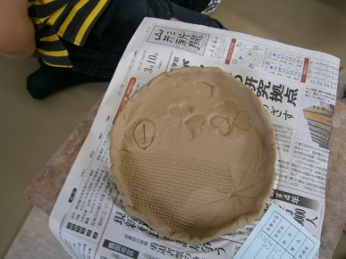 コップやお皿、お茶碗に置き物。葉っぱで模様をつけたり、絵を描いてみたり。