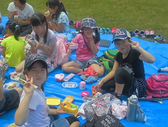 『西公園』へ行って、お家の人が作ってくれたお弁当を皆でいただきます![]()